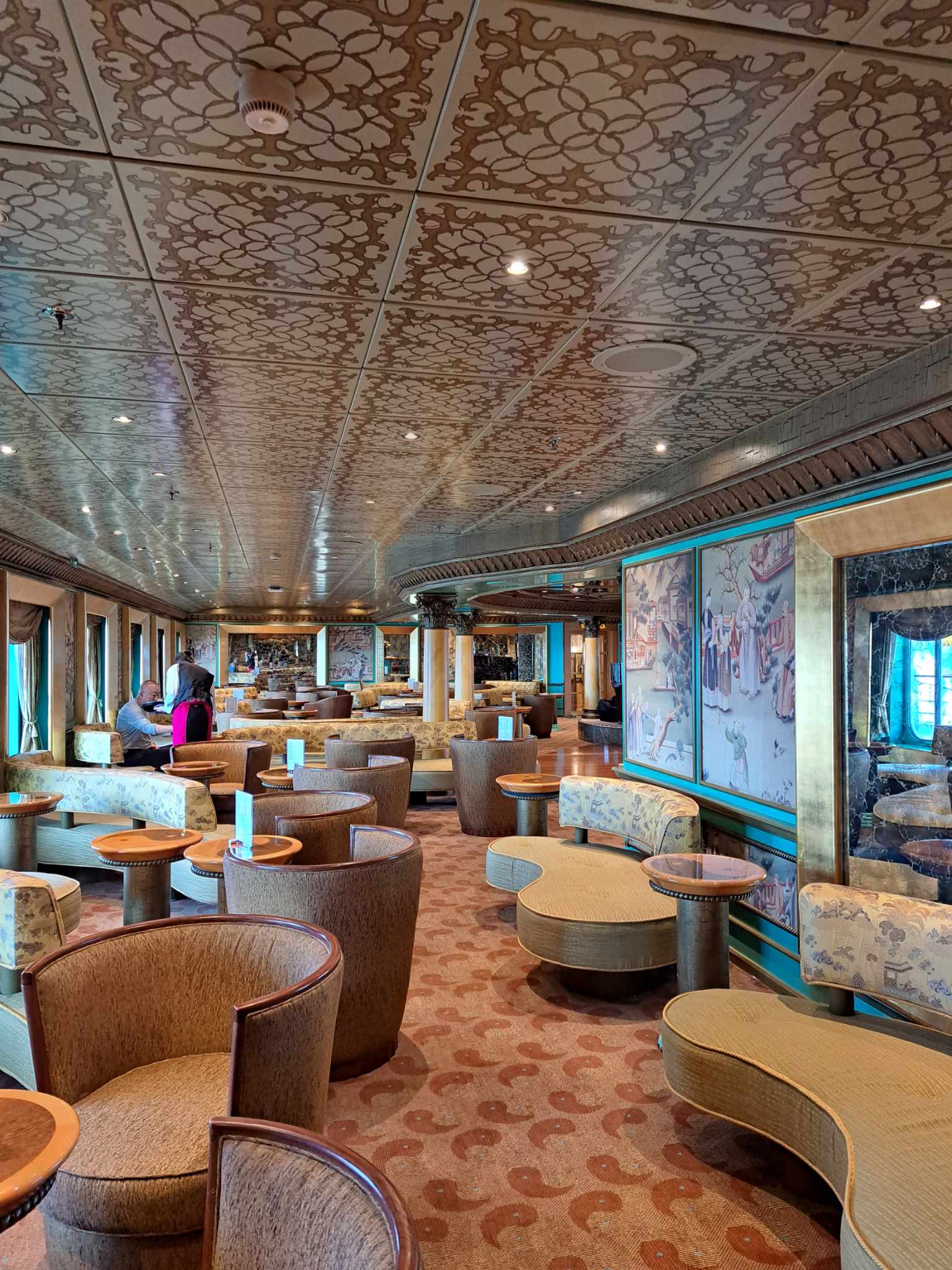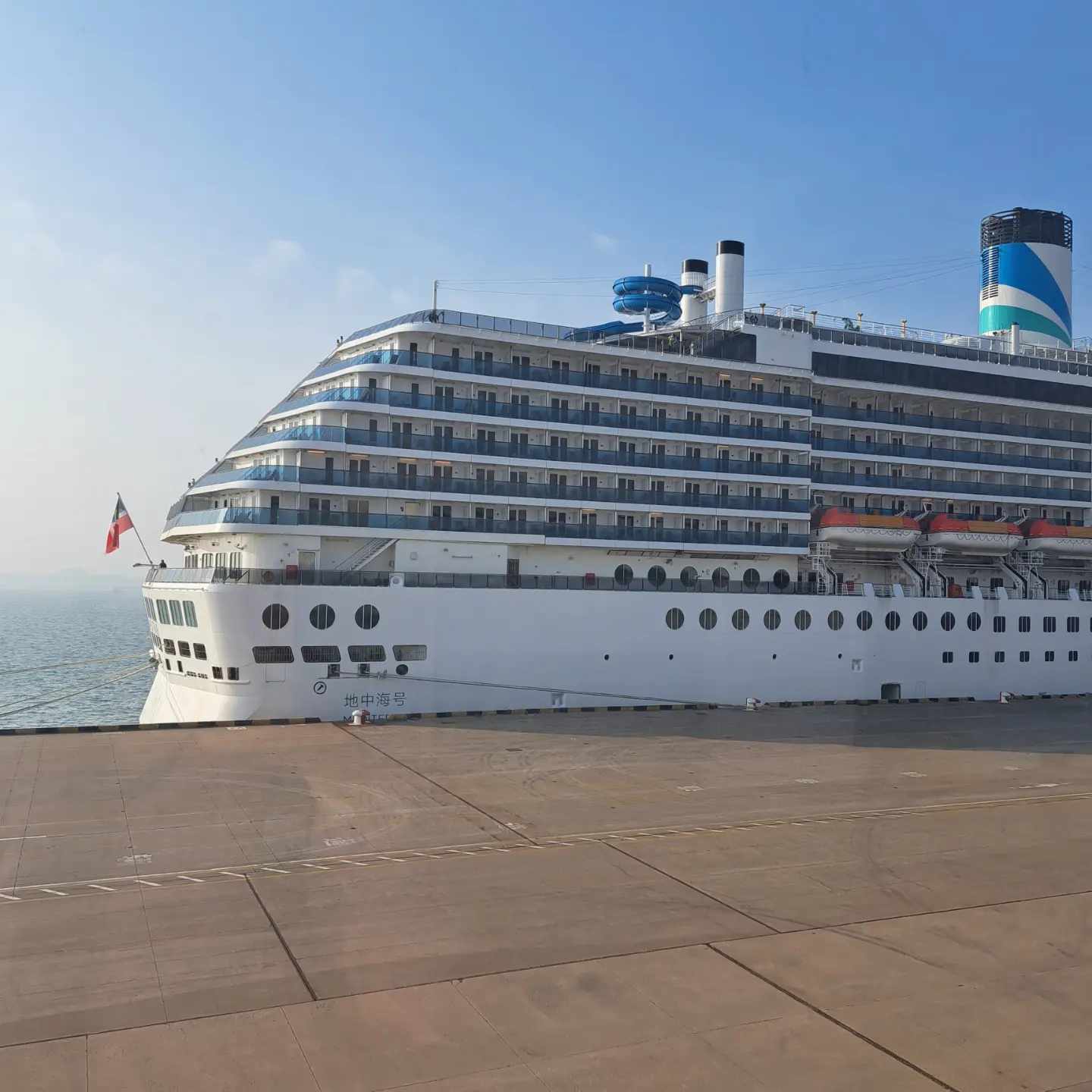 Өглөөний цайгаа уусны дараа зочид буудлын өрөөгөө хүлээлгэн өгөөд усан онгоцондоо суухаар явна. Тяньжины порт руу очин бүртгэлээ хийлгэн усан онгоцондоо сууна. Хөлөг онгоцонд сууснаар оройн хоол зооглон, хөлөг онгоцны янз бүрийн байгууламжуудаар аялж, аялалын хөлөг онгоцны байнгын аврах сургуулилтад оролцох боломжтой. Үүний дараагаар Хөлөг онгоц дээрх тансаг зэрэглэлийн аялал маань эхэлнэ. /өглөөний цай, оройн хоолтой/